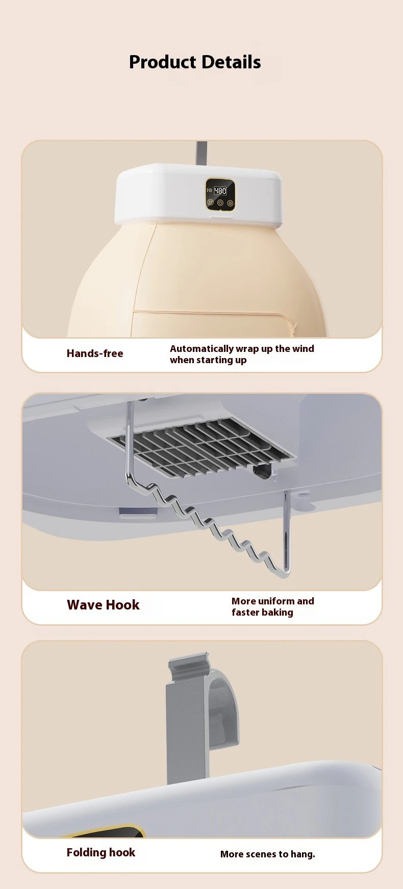 ?360° secagem tridimensional em temperatura constante, secagem completa das roupas, macia e difícil de enrugar;